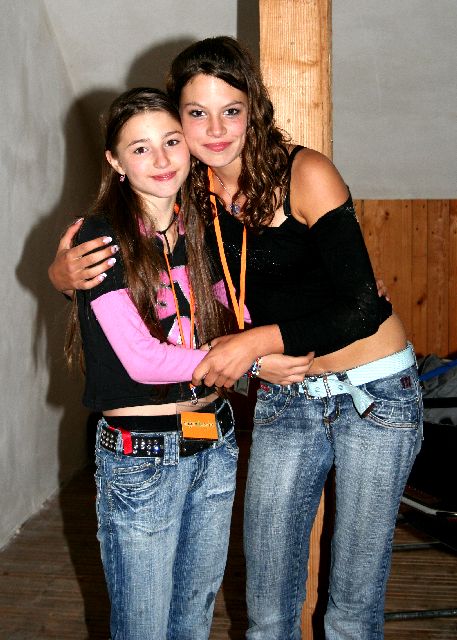 | Stolz auf ihre neuen Backstage-Ausweise und sehr entspannte Gesichter nach dem gelungenen Auftritt: Gilda und Stefanie im Backstage-Bereich. |