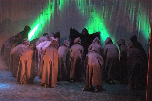 Verblüffung im Zuschauerraum: Zu düsteren Industrialklängen eröffnen wir unsere Tanzcollage "Planet of Darkness", eine Neuinterpretation des uralten Kampfes von bösen gegen gute Mächte, in denen aber das Böse, Dunkle schließlich obsiegt ... |
