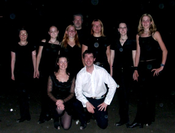 Die Chieftains (im Hintergrund) spielen das "Kerry Reel Set". Und Sabrina, Nadine, Jacqueline und Daniela zeigen ihre Schritte. Nicht zu sehen: Jenny und Sandra.