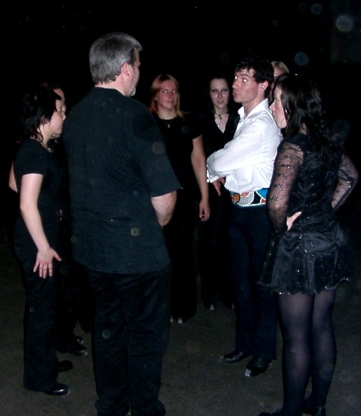 Derek Fahy und Louise Connolly (ganz rechts) besprechen mit Thomas Stork die Tanzeinlage fürs Finale.