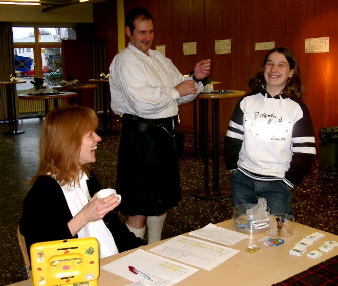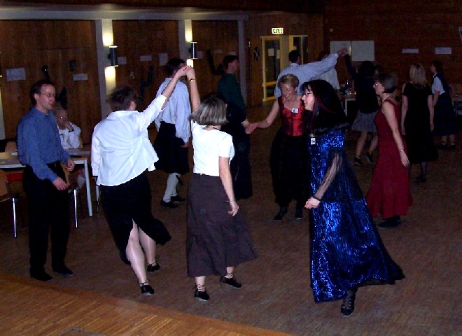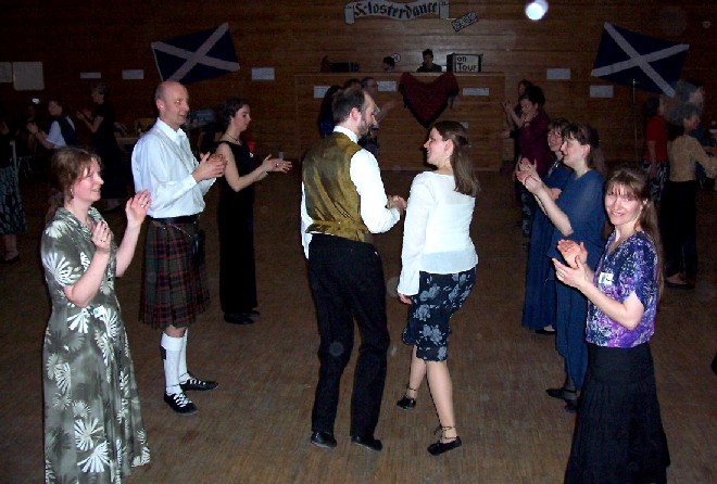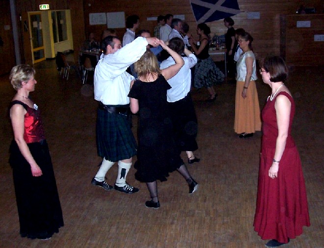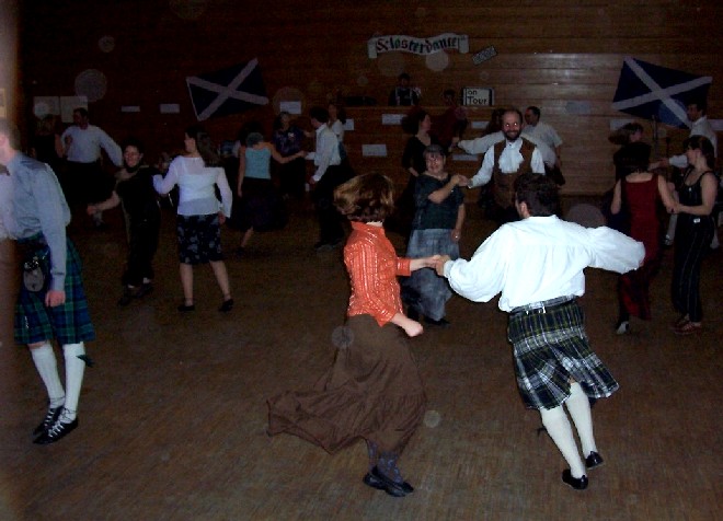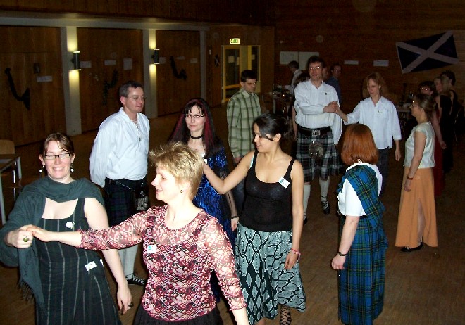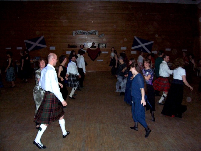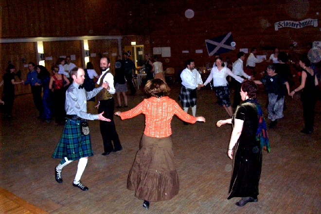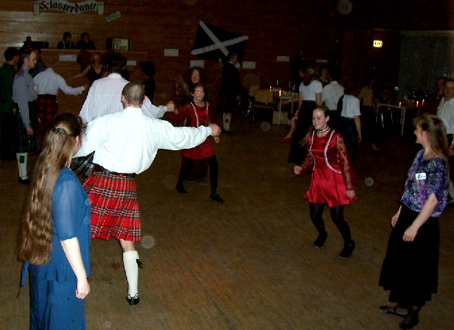 In diesem Jahr fand der "Duisburger" Schottenball nun endlich zum ersten Mal auch wirklich in Duisburg statt, nachdem wir viele Jahre lang die idyllische Umgebung des Klosters in Mülheim-Saarn nutzen konnten. Aber der Raum im Kloster, in dem wir vor 1998 mit rund 35 Tänzern unseren ersten Tanzabend feierten, wurde uns zuletzt zu eng (obwohl wegen der akuten Grippe-Epidemie diesmal nicht mehr Tänzer gekommen waren als sonst).