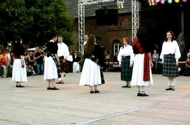 Wir kamen mit über 30 schottischen und irischen Tänzern! Vor vielen hundert Besuchern, von "Moyland" zwischenzeitlich in Ceili-Ekstase gespielt und gesungen, zeigten wir schottische Tänze und irische Reels, Jigs, Hornpipes.